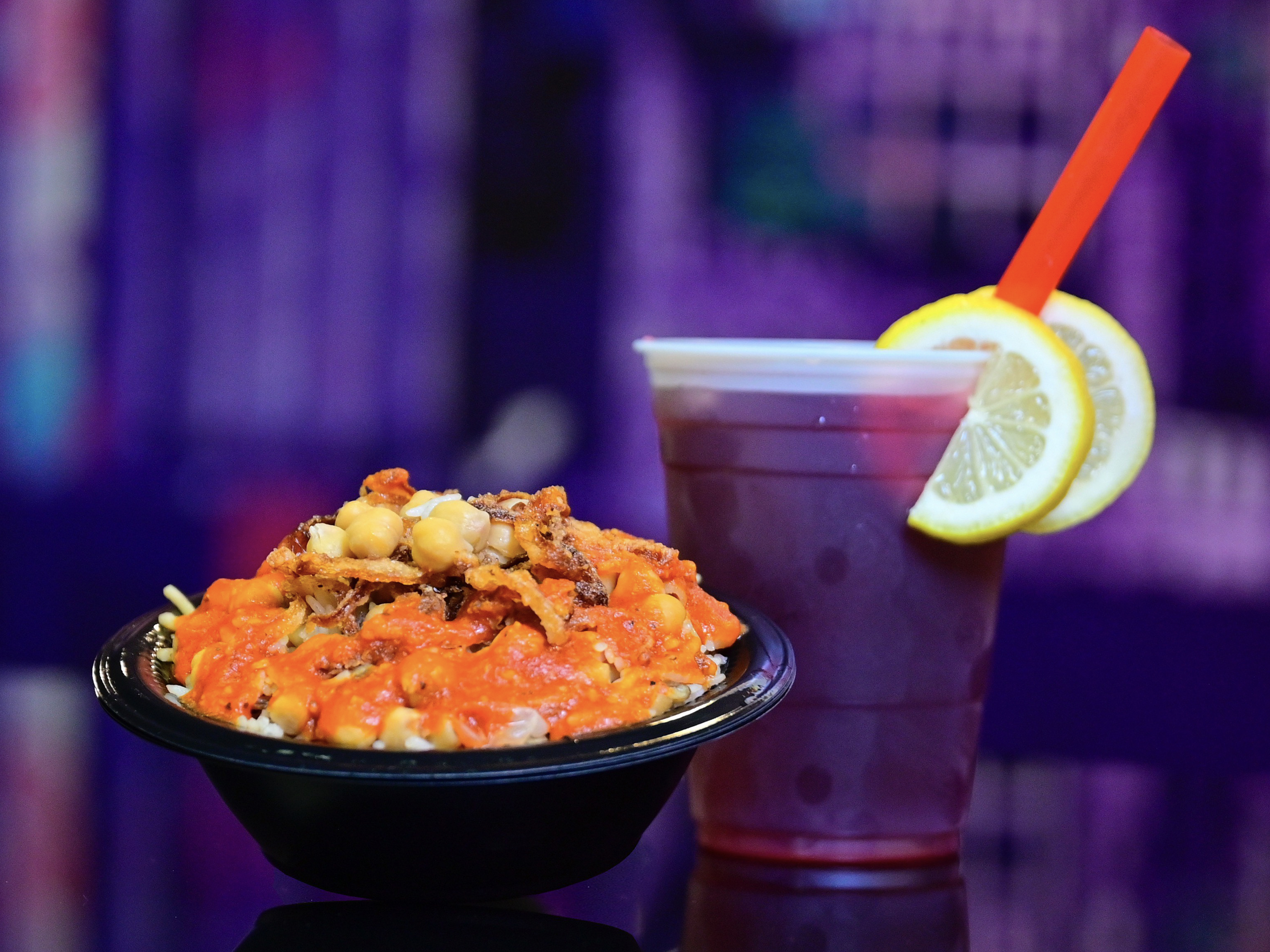 Kosharina Egyptian Cuisine serves Koshari (rice, pasta, chickpeas, lentils, tomato sauce, garlicky vinegar "dakkah" sauce, topped with fried onions) in three varieties (chicken, beef and vegetable);...